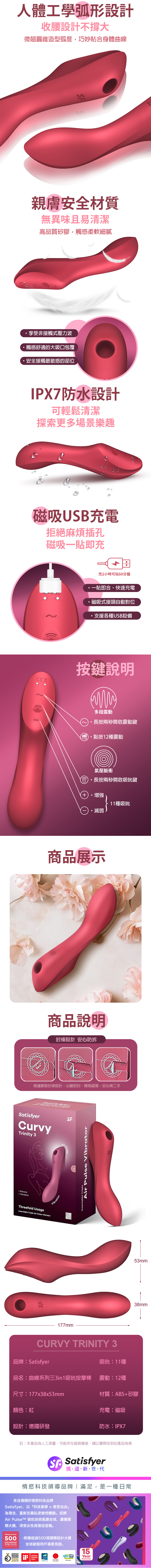 品名:Satisfyer|Curvy Trinity 3|曲線吸吮按摩棒 紅