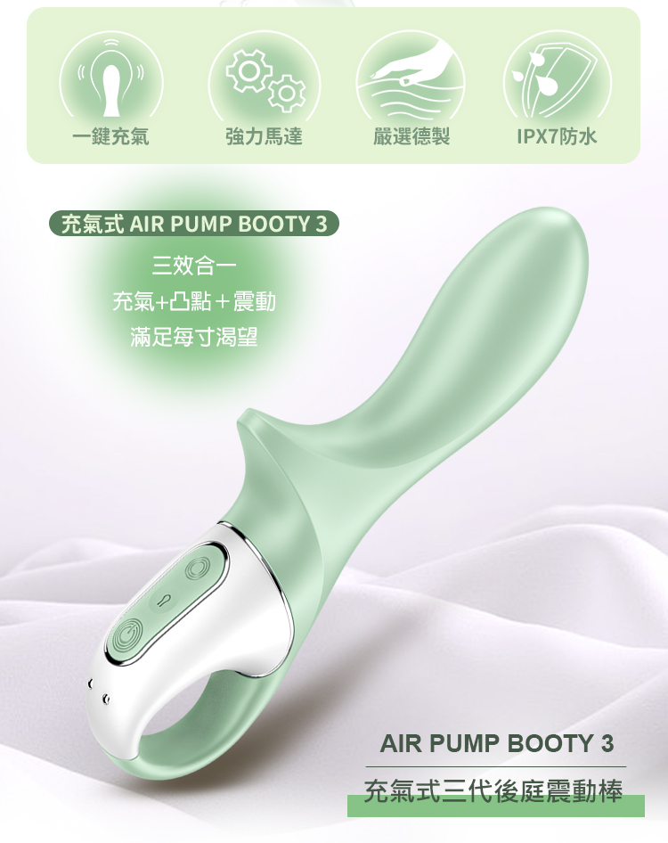 Satisfyer|Air Pump Booty 3|充氣式後庭震動按摩棒 灰綠